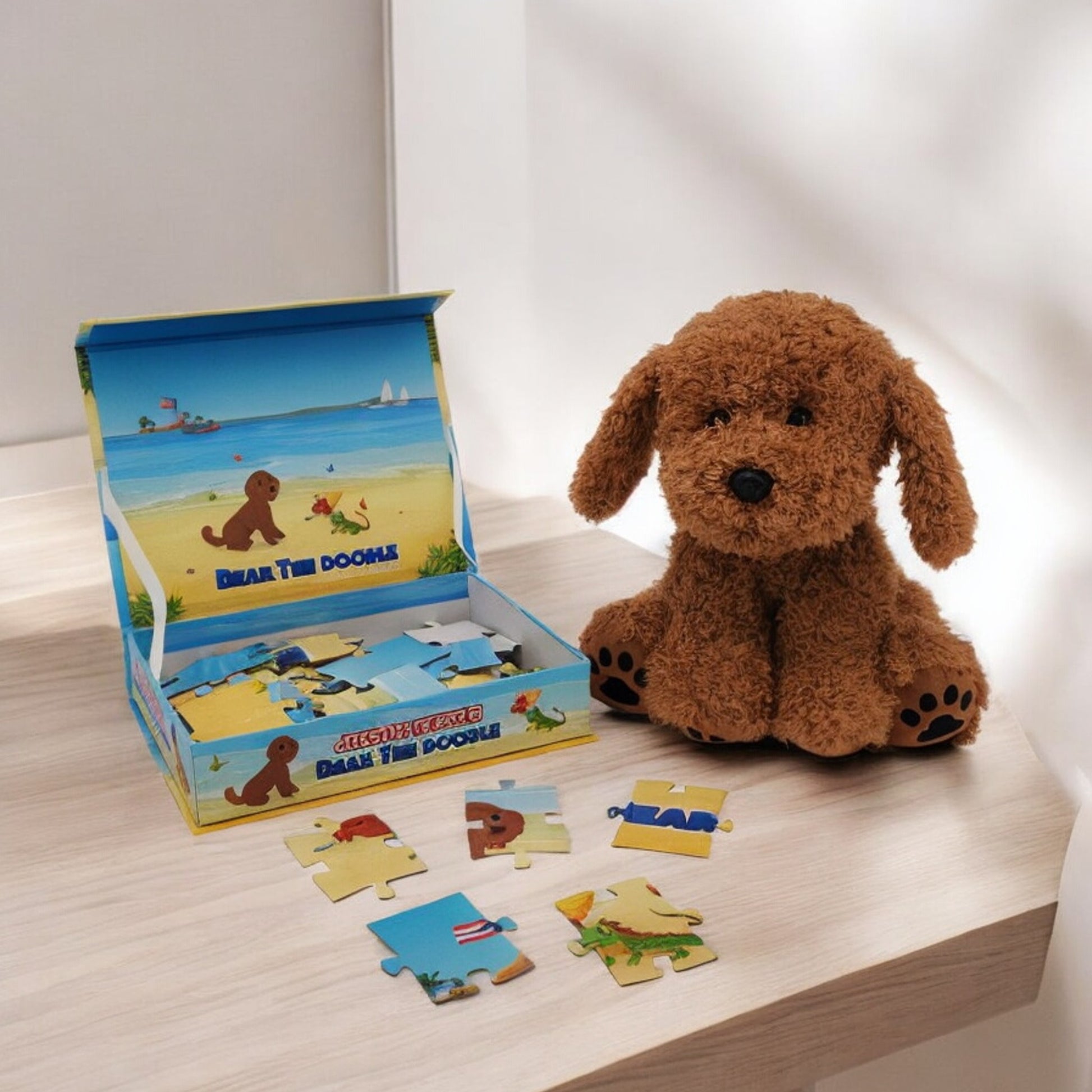 Get ready for endless fun and learning with the Bear the Doodle Puzzle! This vibrant and engaging puzzle features Bear and his friends, Ana the Iguana and Tico the Hermit Crab, perfect for young children. Puzzles are a fantastic way to develop important skills like hand-eye coordination, problem-solving, and fine motor skills. Watch your little one light up with excitement as they piece together this delightful scene!