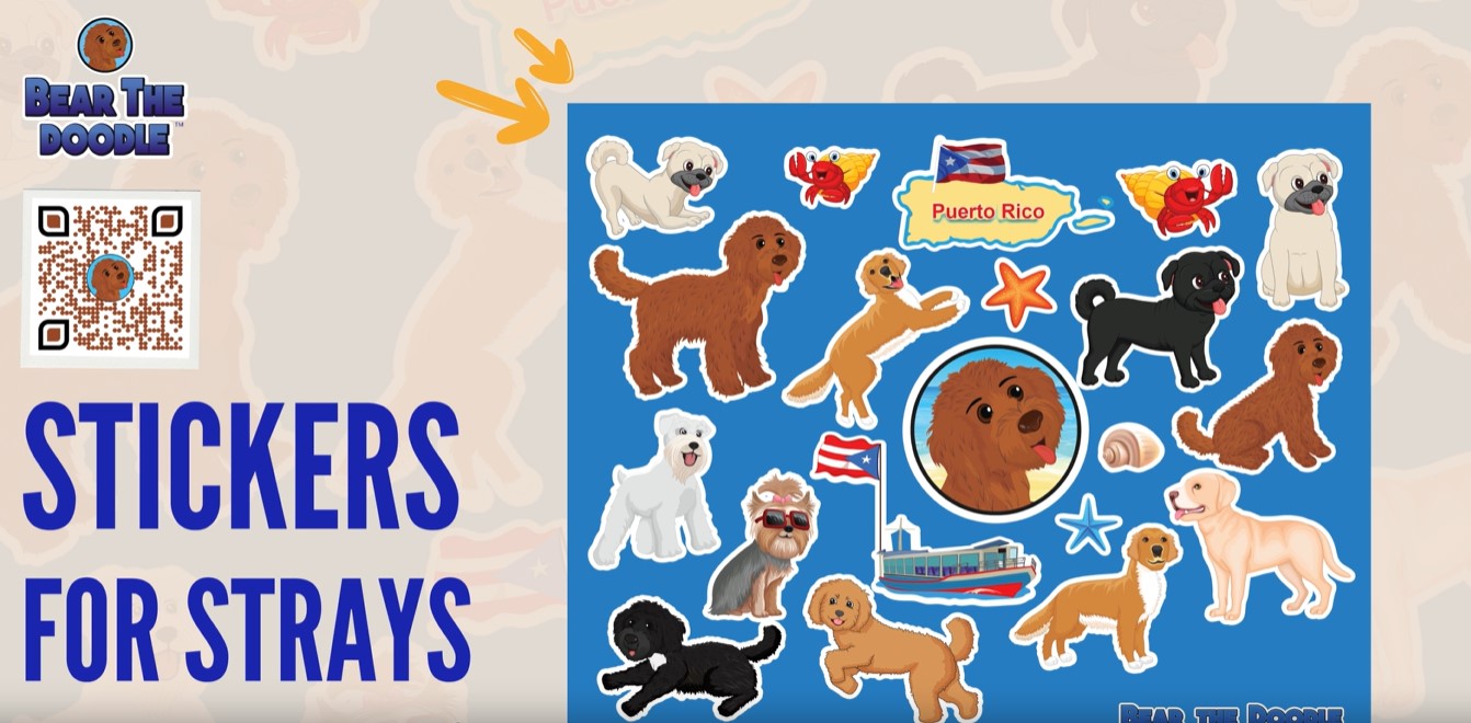 Ayuda a Bear the Doodle a apoyar a los rescatistas en Puerto Rico para sacar a los perros y gatos de las calles. El 100% de las ganancias de ventas serán donadas para apoyar a nuestras organizaciones sin fines de lucro y pequeños rescatistas con cuidado veterinario, esterilización, castración, y educación sobre la responsabilidad a largo plazo de tener una mascota. Al comprar este sticker para tu pequeño especial, ¡estarás haciendo la diferencia!